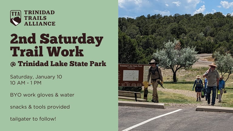 This month we'll be working at Levsa Canyon trail at Trinidad Lake State Park -- hope to see you there! Read on for details, plus a huge THANK YOU to all who donated to our 2025 fundraiser, and more...