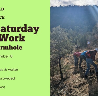 We're headed back to the Wormhole for November's 2nd Saturday trail work day. Note that we are bumping the start time to 10AM with the change of the seasons!